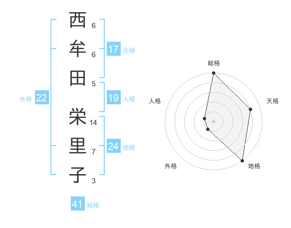 西牟田 栄里子さんの総格は41画の5点!