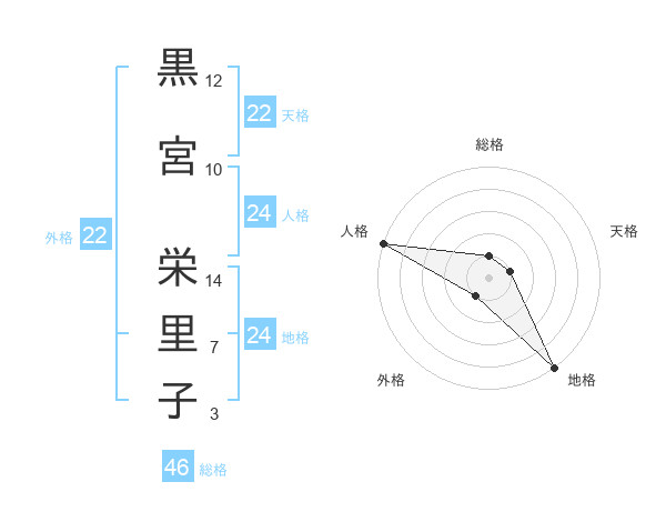 黒宮 栄里子さんの天格は22画の1点!