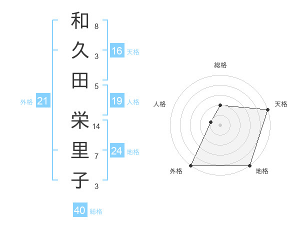 和久田 栄里子さんを姓名の画数から五運を鑑定