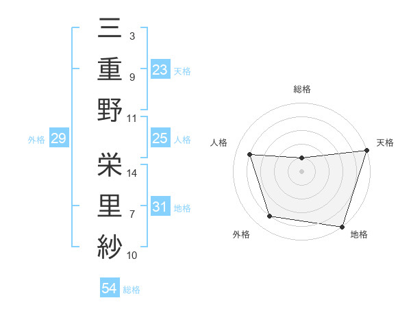 三重野 栄里紗さんの天格は23画の5点!