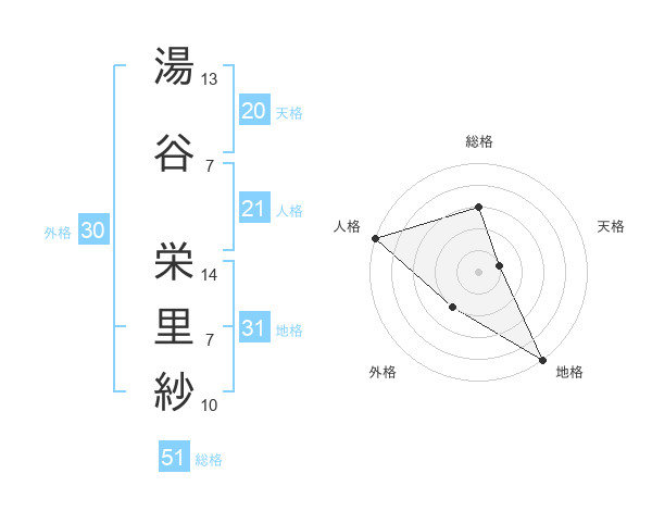 湯谷 栄里紗さんを姓名の画数から五運を鑑定