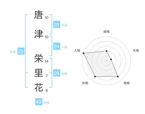 唐津 栄里花さんの総格は49画の2点!