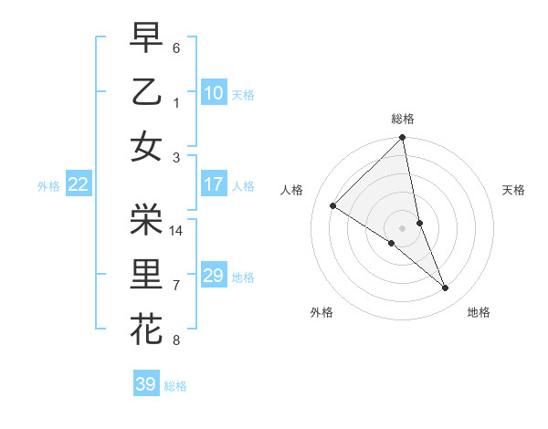 早乙女 栄里花さんの総格は39画の5点!