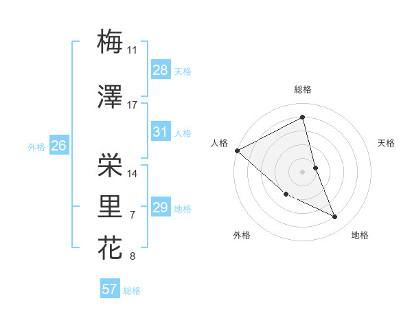 梅澤 栄里花さんを姓名の画数から五運を鑑定