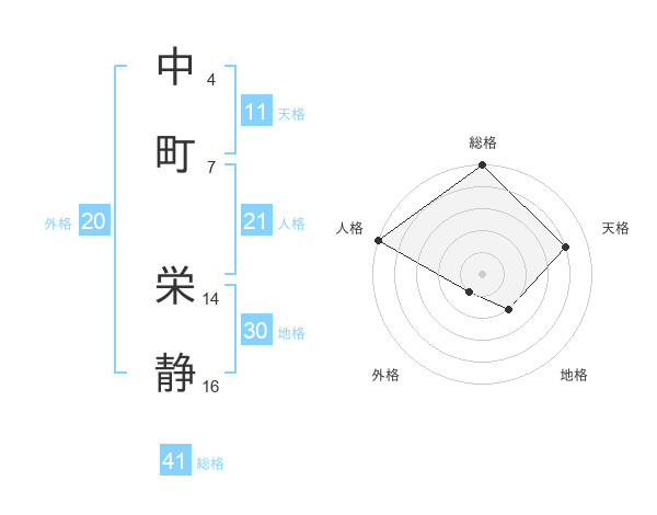 中町 栄静さんの総格は41画の5点!