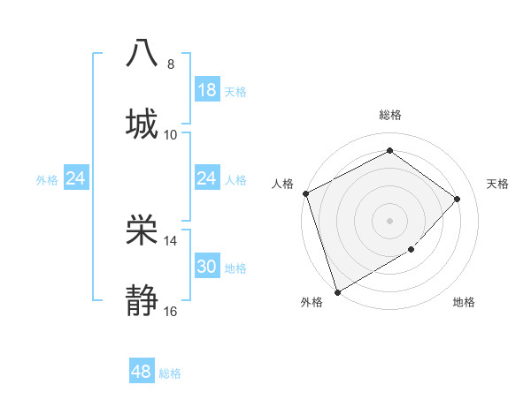 八城 栄静さんの総格は48画の4点!