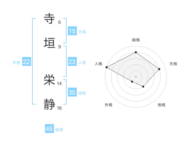 寺垣 栄静さんの総格は45画の4点!
