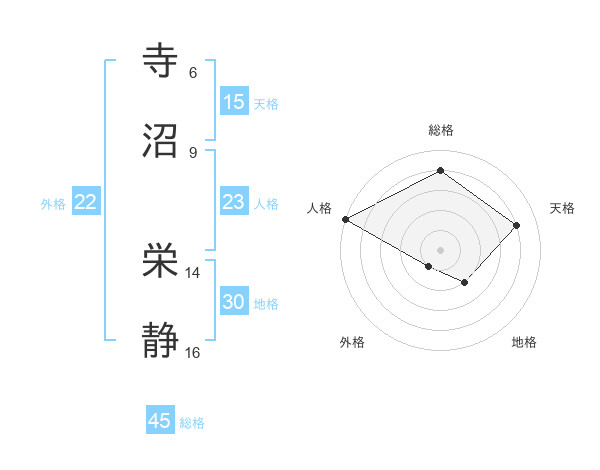 寺沼 栄静さんの総格は45画の4点!