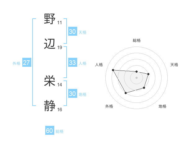 野辺 栄静さんを姓名の画数から五運を鑑定