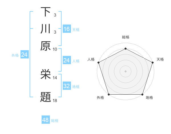 下川原 栄題さんの総格は48画の4点!