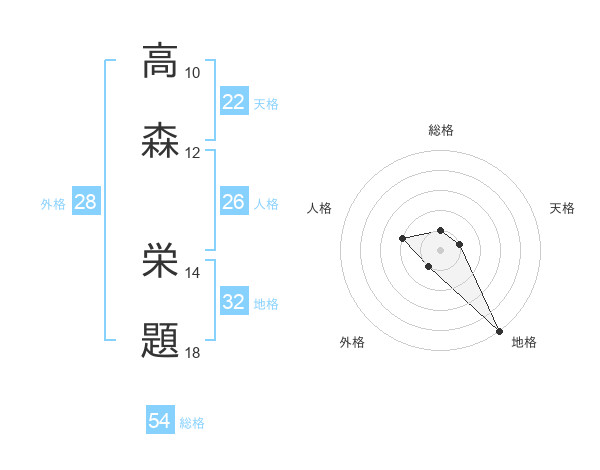高森 栄題さんの総格は54画の1点!