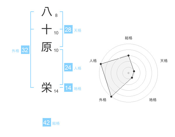 八十原 栄さんの外格は32画の5点!