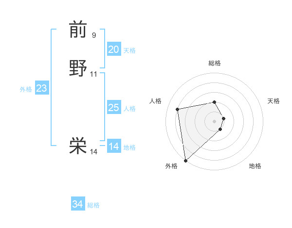 前野 栄さんの総格は34画の2点!
