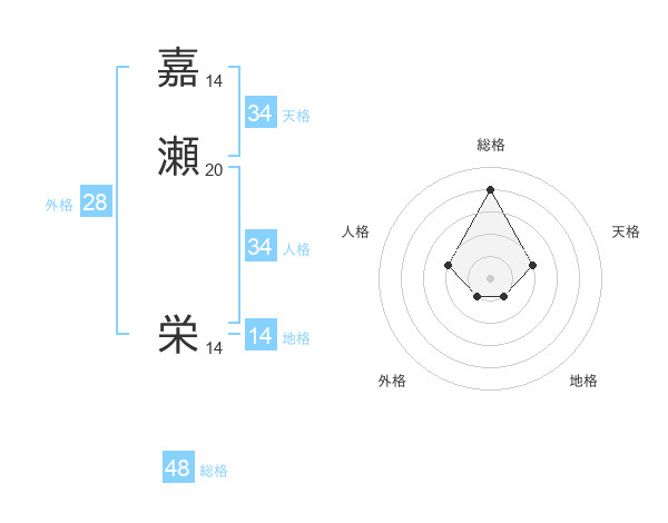 嘉瀬 栄さんの天格は34画の2点!