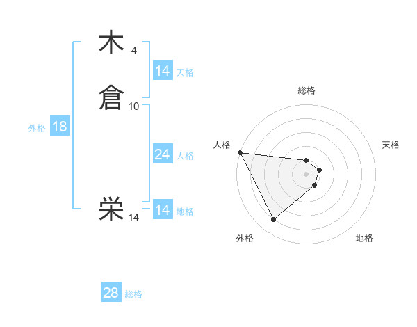 木倉 栄さんの総格は28画の1点!