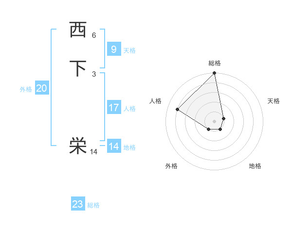 西下 栄さんの総格は23画の5点!
