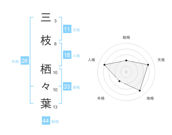 三枝 栖々葉さんを姓名の画数から五運を鑑定