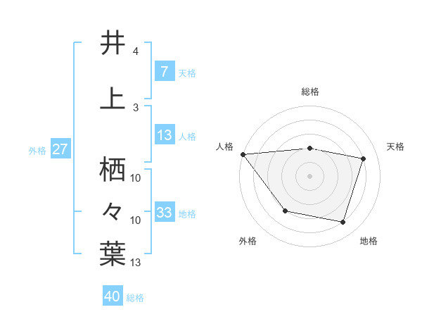 井上 栖々葉さんの地格は33画の4点!
