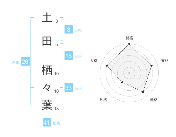 土田 栖々葉さんを姓名の画数から五運を鑑定