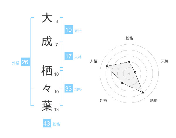 大成 栖々葉さんを姓名の画数から五運を鑑定