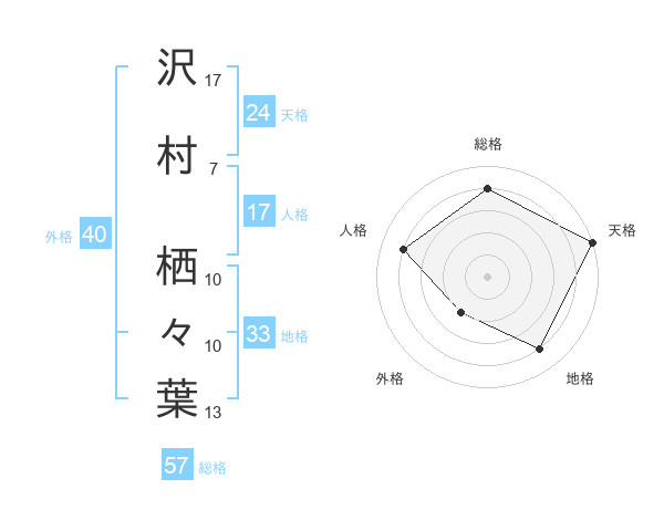 沢村 栖々葉さんを姓名の画数から五運を鑑定