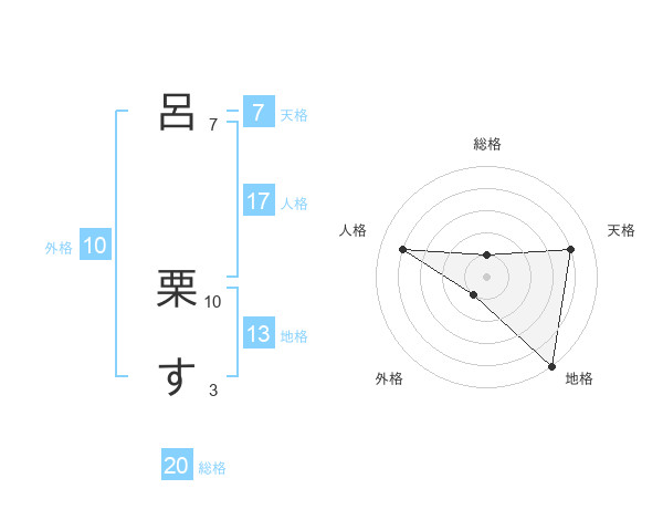 呂 栗すさんの総格は20画の1点!