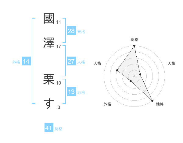 國澤 栗すさんを姓名の画数から五運を鑑定