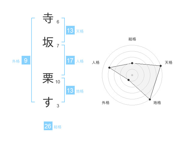 寺坂 栗すさんの天格は13画の5点!