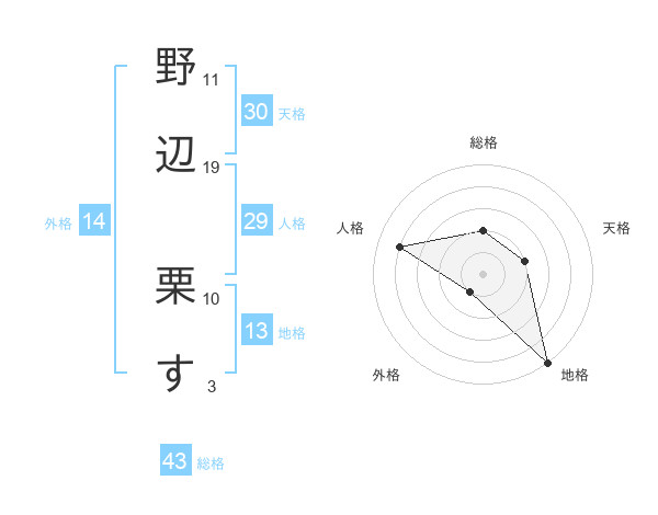 野辺 栗すさんの総格は43画の2点!