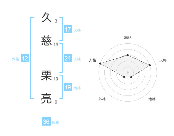 久慈 栗亮さんを姓名の画数から五運を鑑定