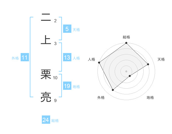 二上 栗亮さんを姓名の画数から五運を鑑定