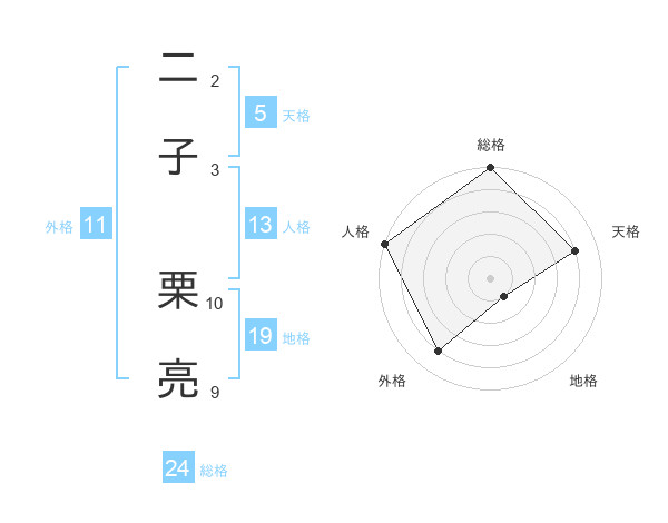 二子 栗亮さんを姓名の画数から五運を鑑定