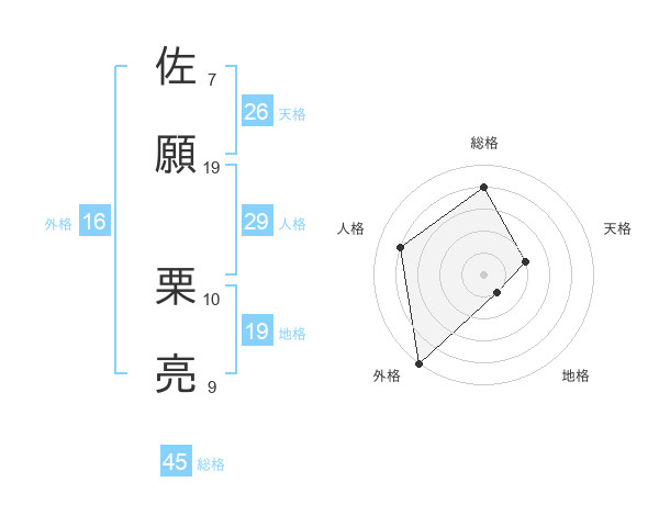 佐願 栗亮さんを姓名の画数から五運を鑑定