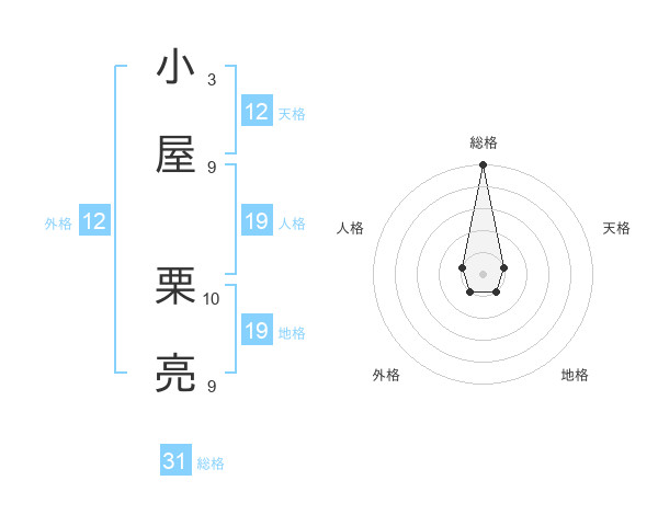 小屋 栗亮さんを姓名の画数から五運を鑑定