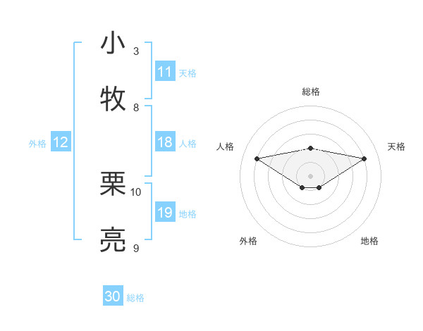 小牧 栗亮さんの総格は30画の2点!