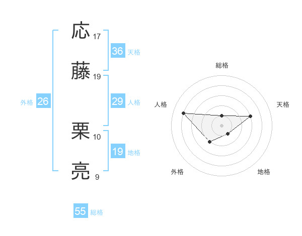 応藤 栗亮さんの総格は55画の1点!