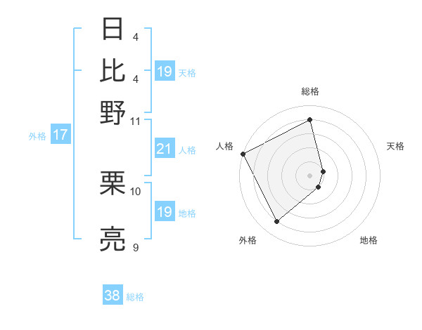 日比野 栗亮さんの総格は38画の4点!