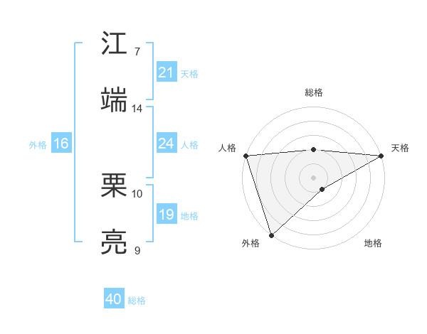 江端 栗亮さんの天格は21画の5点!