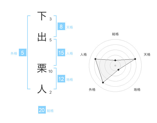 下出 栗人さんの総格は20画の1点!