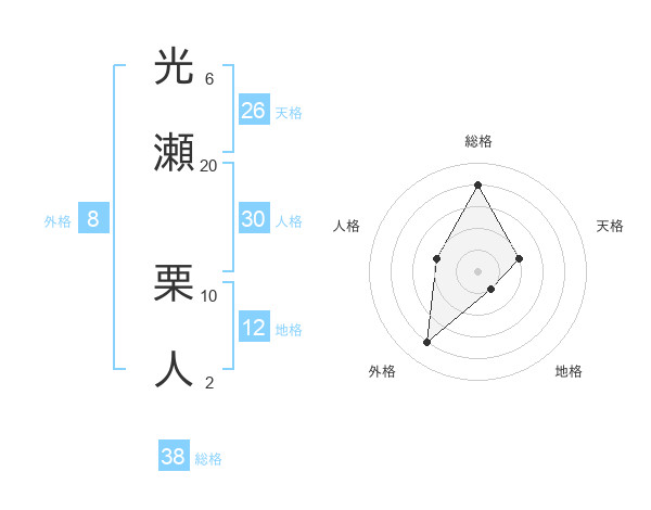 光瀬 栗人さんの総格は38画の4点!