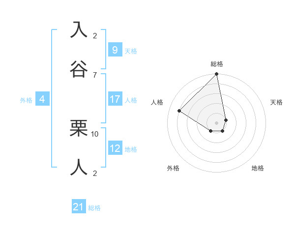 入谷 栗人さんを姓名の画数から五運を鑑定