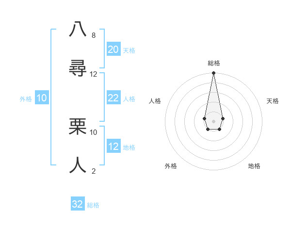 八尋 栗人さんを姓名の画数から五運を鑑定