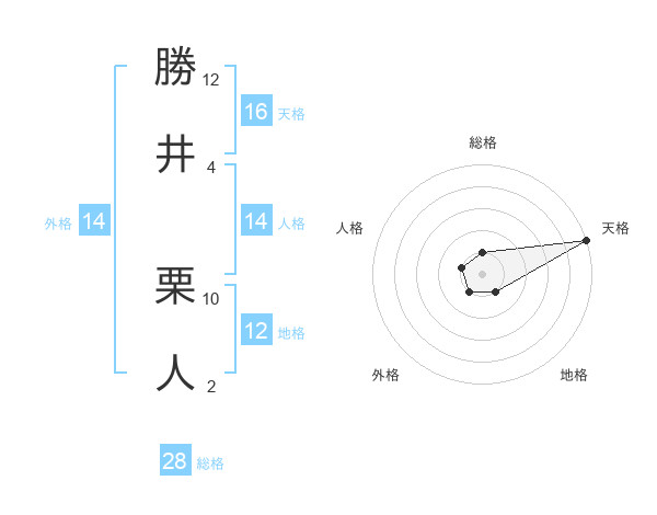 勝井 栗人さんの天格は16画の5点!
