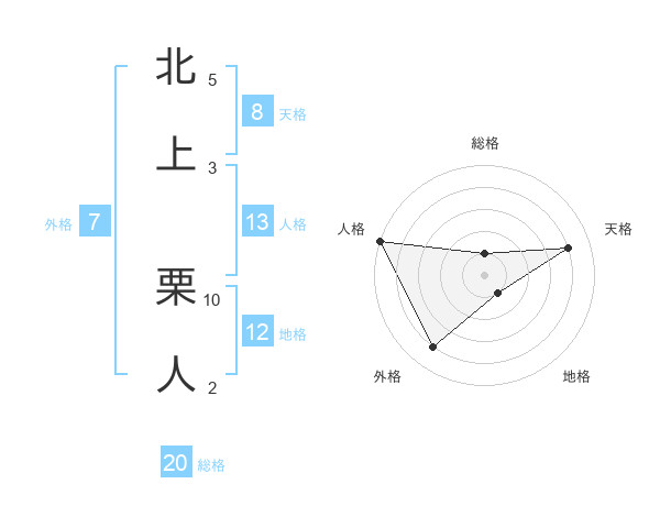 北上 栗人さんの総格は20画の1点!