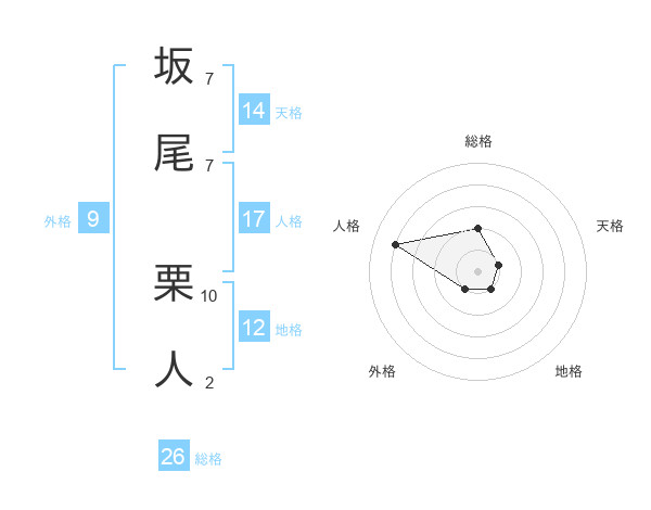 坂尾 栗人さんを姓名の画数から五運を鑑定