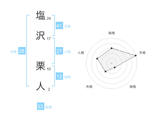 塩沢 栗人さんを姓名の画数から五運を鑑定