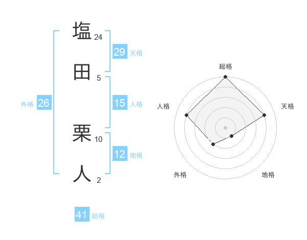 塩田 栗人さんを姓名の画数から五運を鑑定