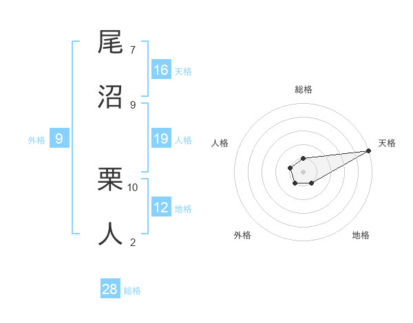 尾沼 栗人さんを姓名の画数から五運を鑑定