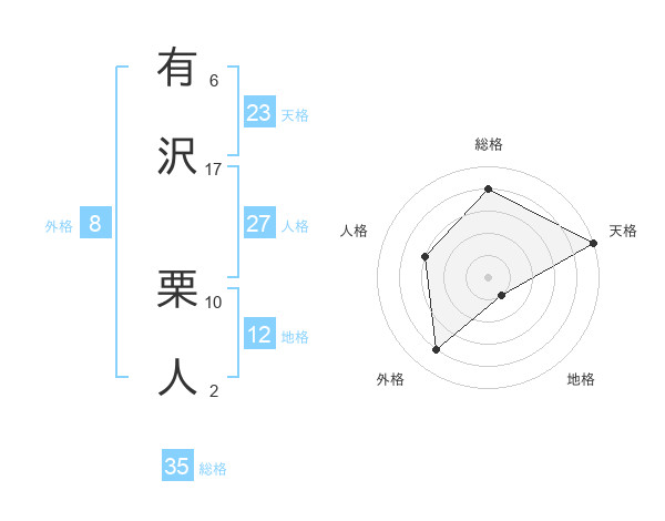 有沢 栗人さんの総格は35画の4点!