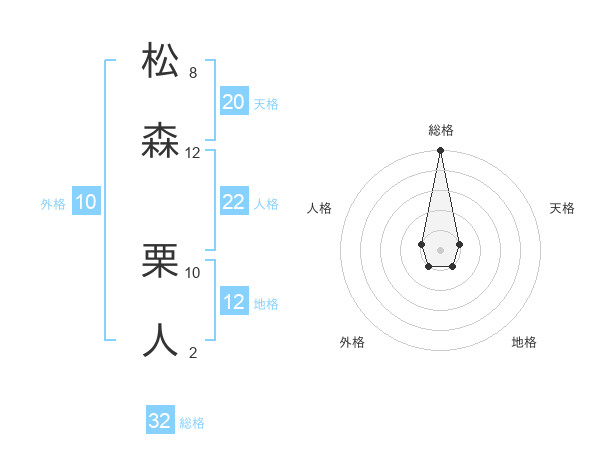 松森 栗人さんの総格は32画の5点!